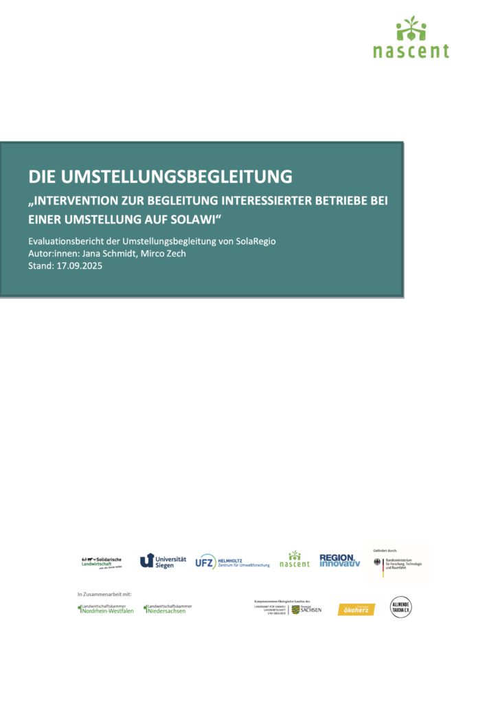 Im November des vergangenen Jahres startete das vom Bundesministerium für Bildung und Forschung geförderte Forschungsprojekt „nascent – SolaRegio“ (Förderkennzeichen 01UY2212), als eine Zusammenarbeit zwischen der Universität Siegen und dem Helmholtz-Zentrum für Umweltforschung. Es wird in enger Zusammenarbeit mit Landwirtschaftsbehörden, -kammern und dem Netzwerk Solidarische Landwirtschaft durchgeführt.